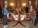 He sat beside his wife while four famous writers addressed us all about the significance of the National Book Festival and the Library of Congress itself, and then we were all off to dinner upstairs. A very nice dinner it was, too; mango shrimp, medallions of lamb, and something called a Fallen Chocolate Souffle that was to die for. The coffee was terrific. The company was dull; we were the only writers at our table. Which was table #31: the Bushes were not visible from there.