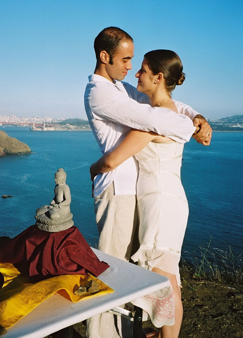 For those who do not know, Terri Luanna Robinson was married on August 22, 2003 to Heron Gonsalvez da Silva, an engineering student from Rio DeJaneiro, Brazil. They decided to have what they call a “destination wedding," in San Francisco. The Soto Zen ceremony was performed by Zoketsu Norman Fischer, past Abbott of the San Francisco Zen Center, attended by Arlene Lueck, a Zen priest and friend of Jeanne’s, at a heart-stoppingly lovely spot high in the Marin headlands called Battery Rathbone-McIndoe, overlooking San Francisco Bay—Golden Gate below to the left, sea off to the right.